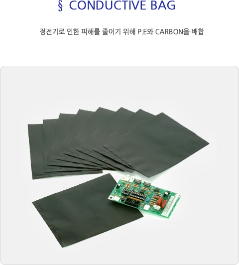 용도 정전기 및 습기에 민감한 각종 IC Chip, LCD, 반도체, 부품등을 포장시 사용 합니다.